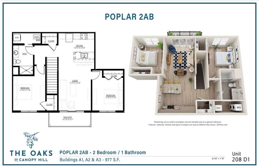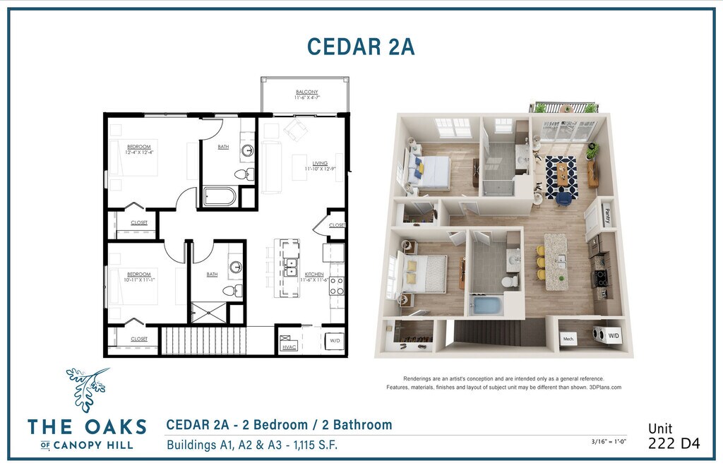 The Oaks of Canopy Hill offers Studio to 3 Bedroom apartments starting from $1,468 and having 714–1,324 sq ft. Here is the current pricing and availability:
