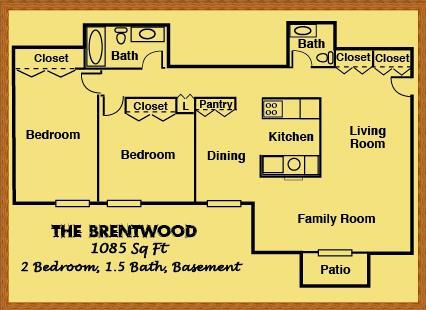 Apartment Model: THE BRENTWOODCall For Rates2 Bedroom, 1.5 Bath, 1085 sq ftUnavailableTHE BRENTWOOD - Floorplan 1 THE BRENTWOOD - Floorplan 2 THE BRENTWOOD - Floorplan 3 THE CRANBROOK