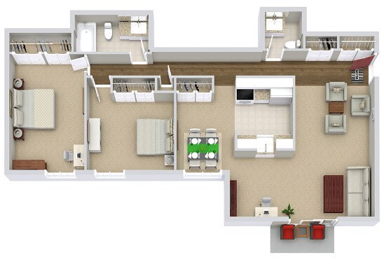 2 Beds, 1.5 Baths, 1165 sq ftLargest 2 BedroomThis is the largest 2 Bedroom at this PropertyModel Gallery