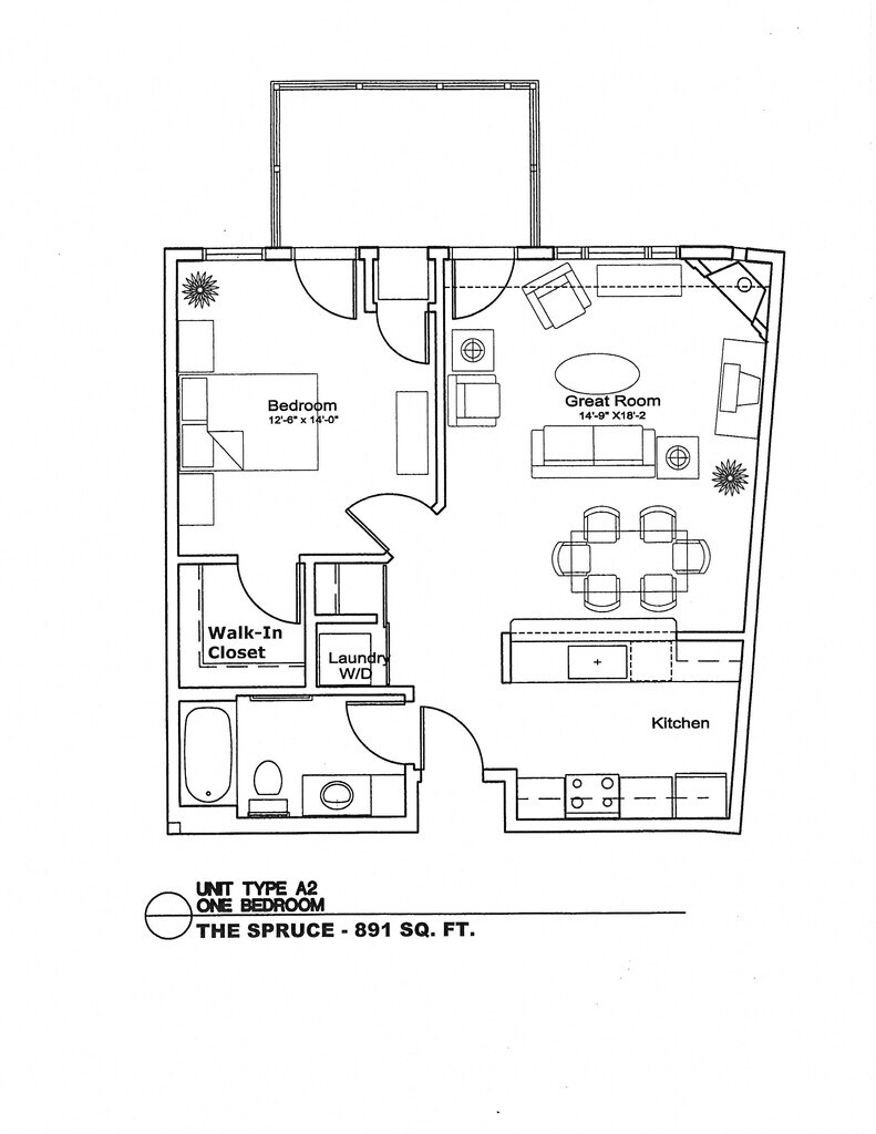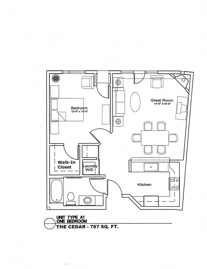 Acacia - One Bedroom plus Den - Floorplan 1 Aspen
