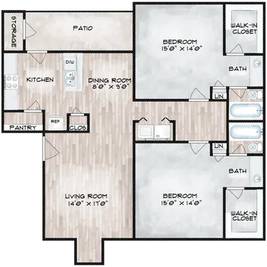 Apartment Model: 2 Bedroom 2 Bathroom2 Bedroom, 2 Bath, 1033 sq ftAvailable Now![]()