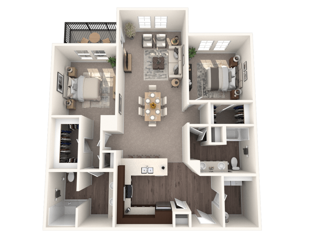 2 Beds, 2 Baths, 1351 sq ftAvailable NowLargest 2 BedroomThis is the largest 2 Bedroom at this PropertyModel Gallery