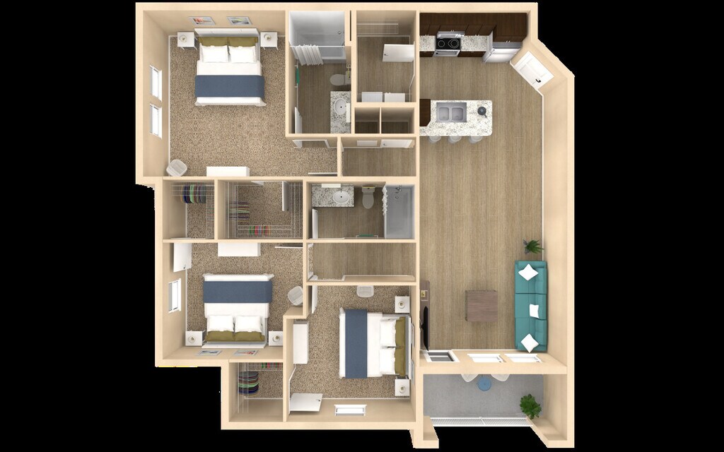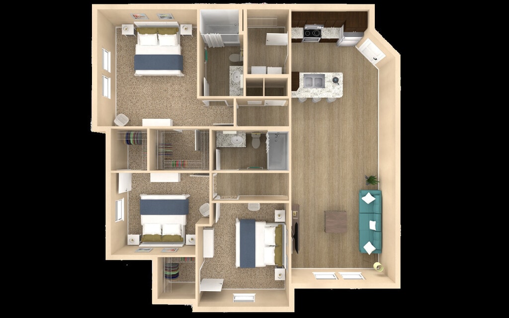 The Oasis at Town Center offers 1 to 3 Bedroom apartments starting from $1,628 and having 820–1,386 sq ft. Here is the current pricing and availability: