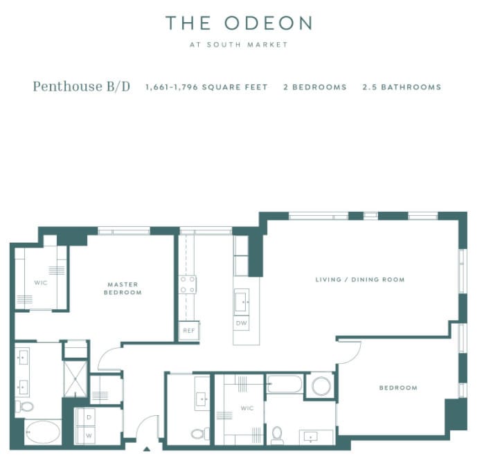 The Odeon at South Market offers Studio to 2 Bedroom apartments starting from $1,967 and having 389–1,796 sq ft. Here is the current pricing and availability: