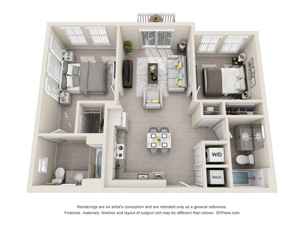2 Beds, 2 Baths, 1030 sq ftAvailable NowLargest 2 BedroomThis is the largest 2 Bedroom at this PropertyModel Gallery