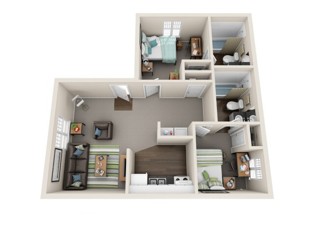 2 Bedroom 2 Bath - Floorplan 1 Apartment Unit: PrivateApartment Model: 2 Bedroom 2 Bath2 Bedroom, 2 Bath, 752 sq ftAvailable NowApartment Unit: PrivateApartment Model: 2 Bedroom 2 Bath2 Bedroom, 2 Bath, 752 sq ftAvailable August 14, 20262 Bedroom 2 Bath Large