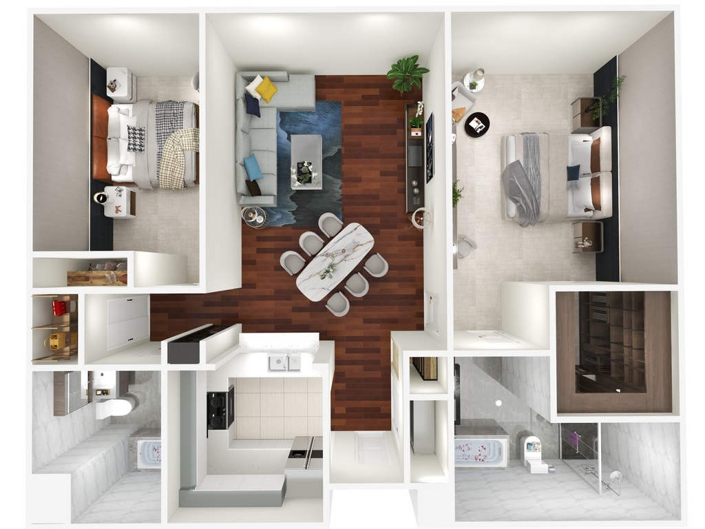 2 Beds, 2 Baths, 1263 sq ftModel Gallery