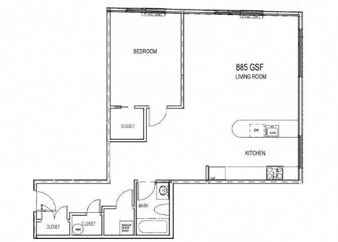 1 Bedroom Ultra Deluxe - Floorplan 1 Apartment Unit: 408Apartment Model: 1 Bedroom Ultra Deluxe$1,8001 Bedroom, 1 Bath, 885 sq ftAvailable February 1, 2026![]()