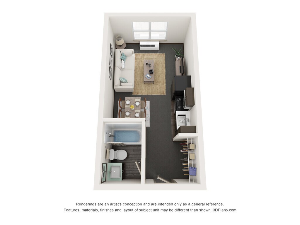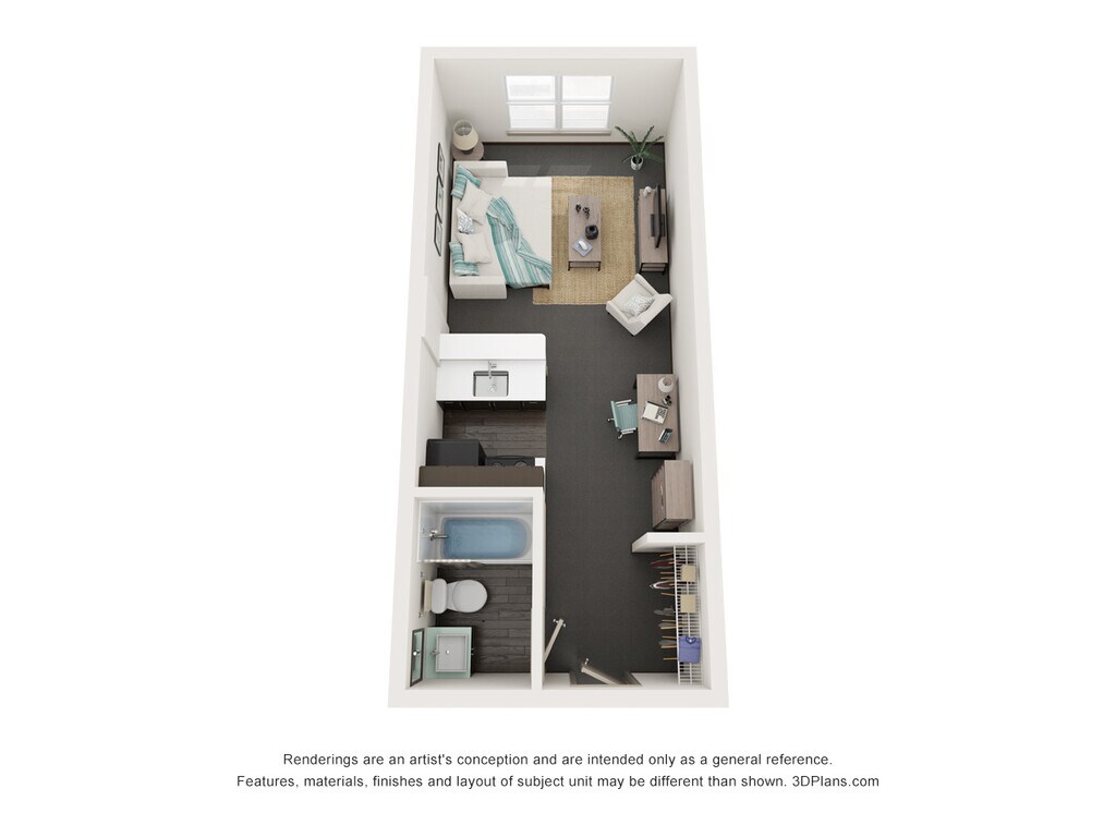 Studio, 1 Bath, 301 sq ftPlus FeesAvailable Oct 31Model Gallery