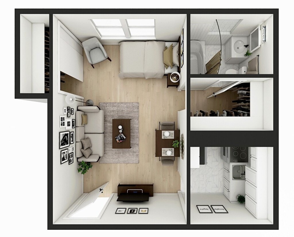 Apartment Model: Extra Large Upgraded StudioFrom $1,250Studio, 1 Bath, 370 sq ftAvailable NowFloorplansPhotos![]()