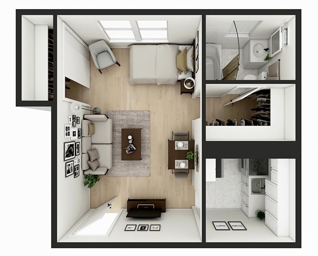 Apartment Model: Upgraded Studio Apartment$1,125Studio, 1 Bath, 363 sq ftAvailable NowFloorplansPhotos![]()