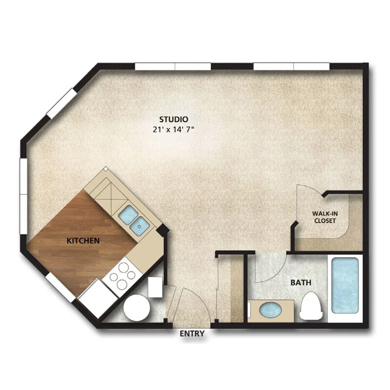Studio, 1 Bath, 545 sq ftAvailable NowModel Gallery