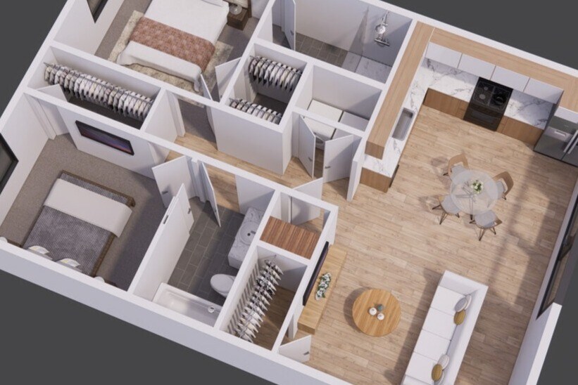 2 Beds, 2 Baths, 840 sq ftModel Gallery