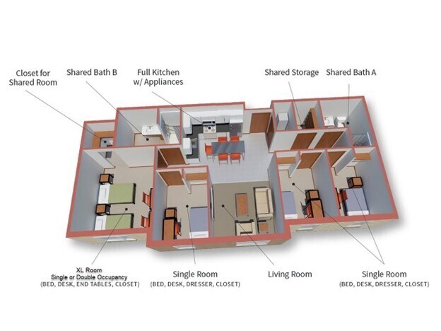 Availability Date Unit Sq Ft Unavailable Red Delicious XL 150 sq ft Apartment Model: Red Delicious XL4 Bedroom, 2 Bath, 150 sq ftUnavailable![]()