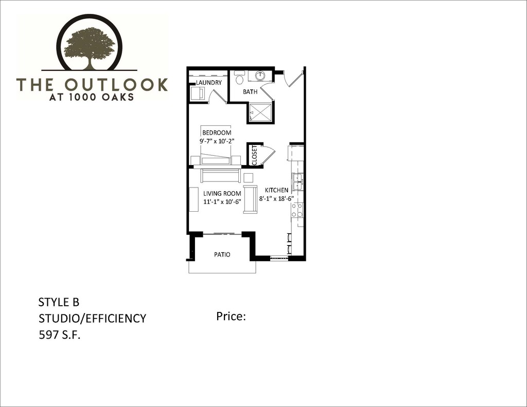 - Studio- Style B1Studio, 1 Bath, 585 sq ft- Model Gallery- Floorplans- Availability Details- Price - Availability Date - Unit - Sq Ft - $1,450 - Call for Availability - Style B1 - 585 sq ft - Model Amenities and Features- Features- Air Conditioning