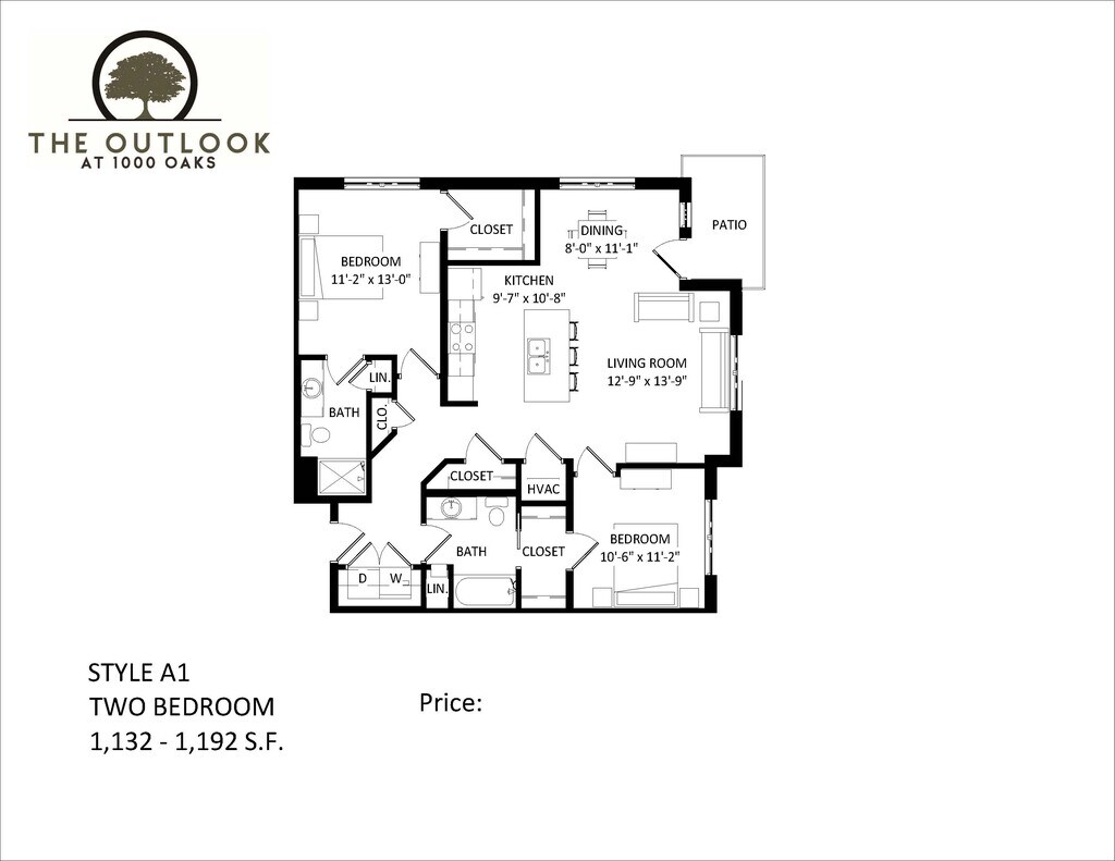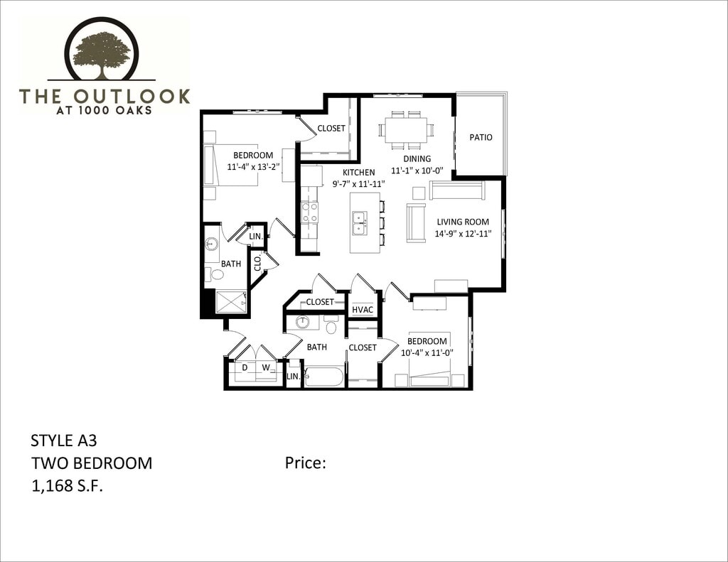 Apartment Model: Style A3$2,1752 Bedroom, 2 Bath, 1168 sq ftAvailable Now![]() - Style A3 - Floorplan 1 Apartment Unit: 1315Apartment Model: Style A3$2,1752 Bedroom, 2 Bath, 1168 sq ftAvailable Now- Style D2 Beds, 2 Baths, 1113-1149 sq ft- Model Gallery- Floorplans- Availability Details- Price - Availability Date - Unit - Sq Ft - From $2,100 - Call for Availability - Style D - 1113-1149 sq ft - Model Amenities and Features- Features- Air Conditioning