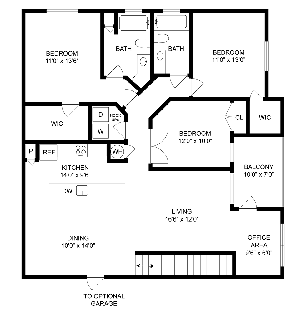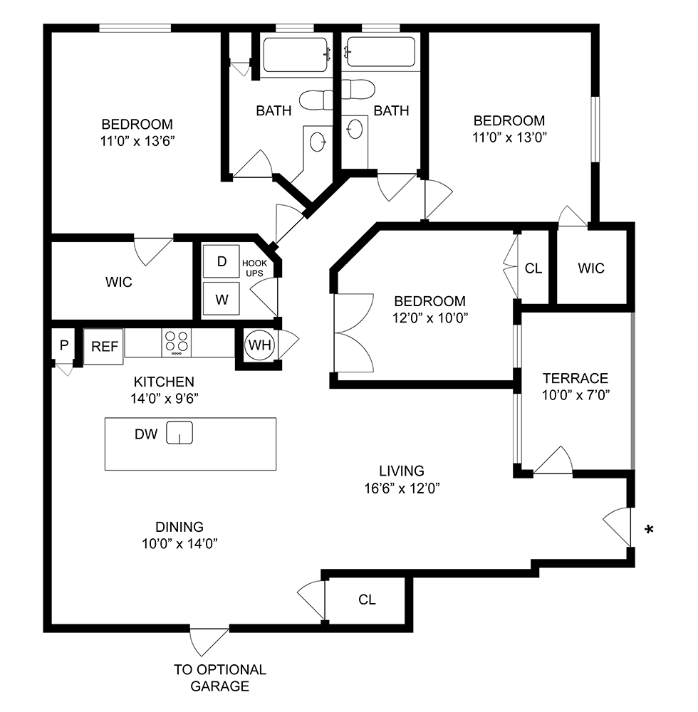 Daisy - Floorplan 1 Floor plans are artist's rendering. All dimensions are approximate. Actual product and specifications may vary in dimension or detail. Not all features are available in every rental home. Please see a representative for details.