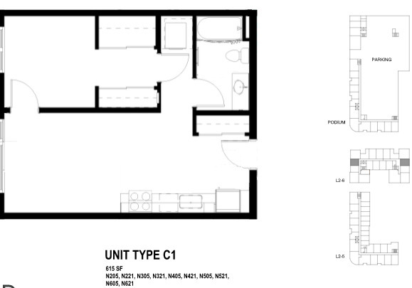 One Bedroom A - Floorplan 1 Apartment Unit: N-405Apartment Model: One Bedroom A$1,7231 Bedroom, 1 Bath, 615 sq ftAvailable NowOne Bedroom B