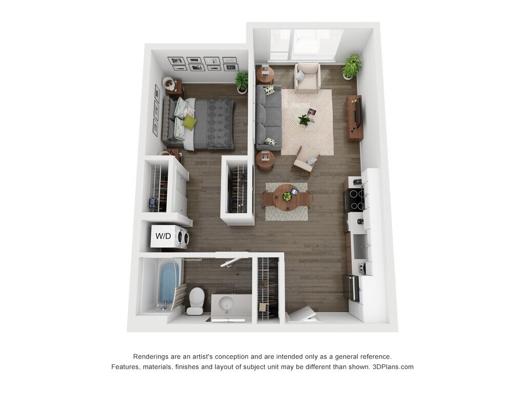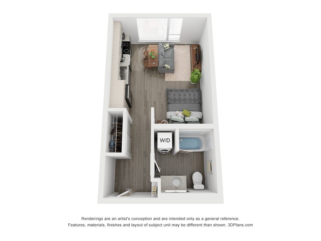 Studio - Floorplan 1 Floor plans are artist's rendering. All dimensions are approximate. Actual product and specifications may vary in dimension or detail. Not all features are available in every rental home. Prices and availability are subject to change. Base rent is based on monthly frequency. Additional fees may apply, such as but not limited to package delivery, trash, water, amenities, etc. Deposits vary. Please see a representative for details.