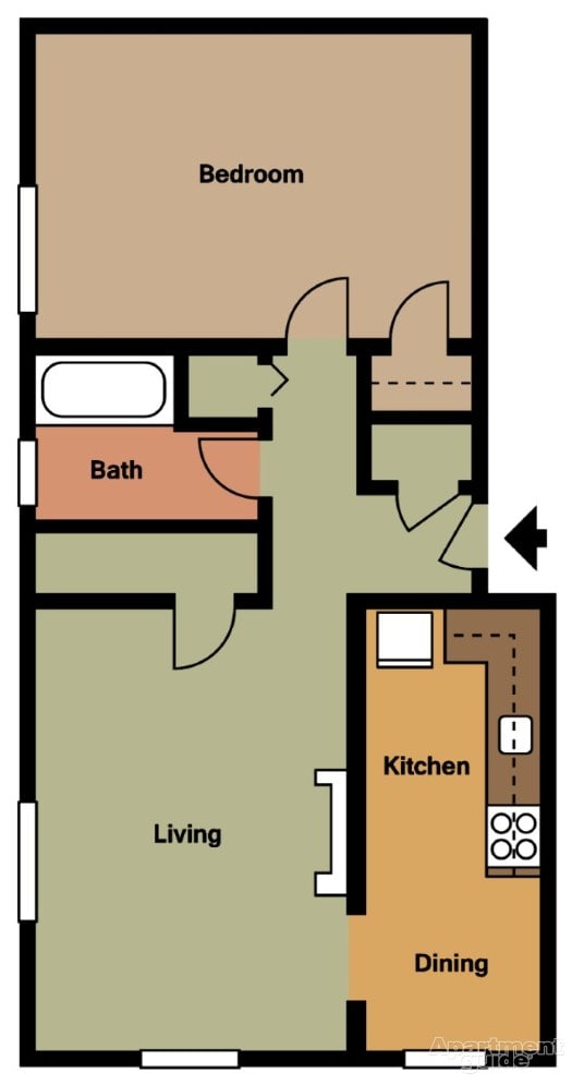 Apartment Model: EfficiencyFrom $650Studio, 1 Bath, 415 sq ftAvailable NowFloorplansPhotos![]()