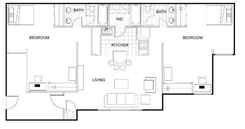 Apartment Model: 2 Bed, 2 Bath WDA Premium2 Bedroom, 2 Bath, 800 sq ftAvailable October 31, 2025FloorplansPhotos![]()
