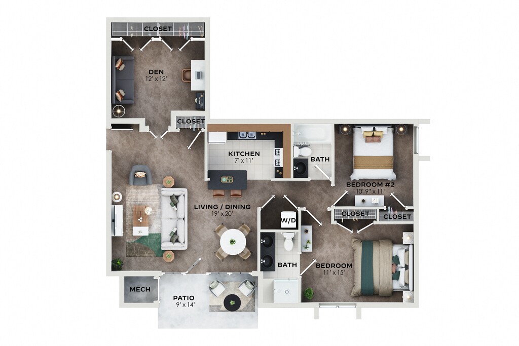 Apartment Model: 2BR + Den Classic$1,8652 Bedroom, 2 Bath, 1108 sq ftAvailable Now![]()