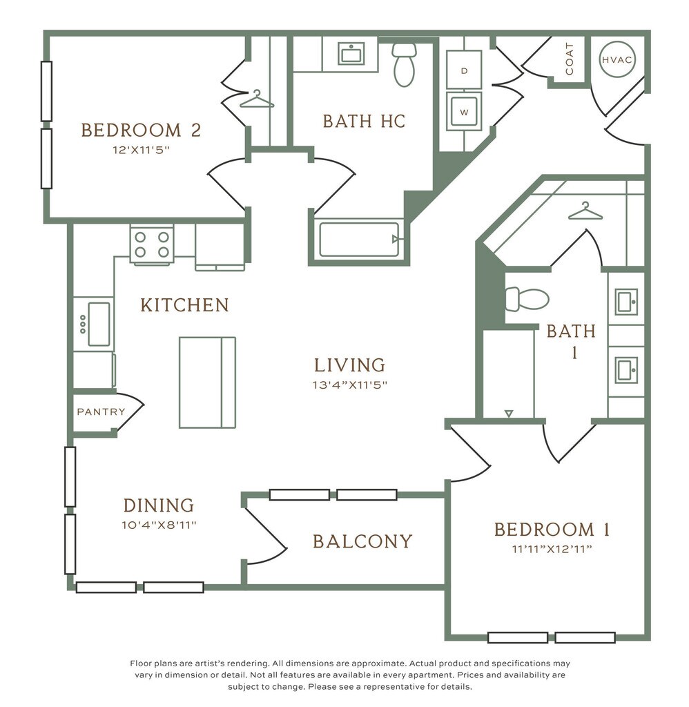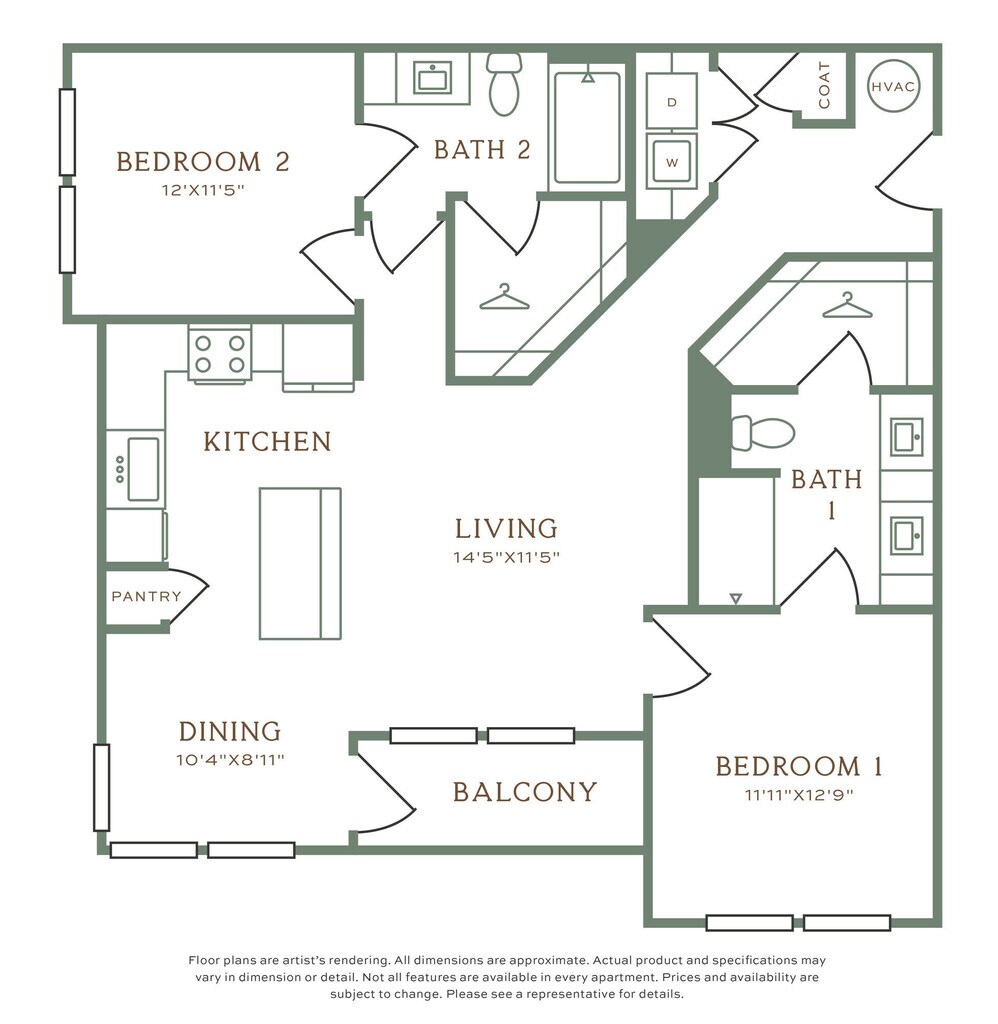 1 Bed, 1 Bath, 733 sq ftAvailable NowModel Gallery