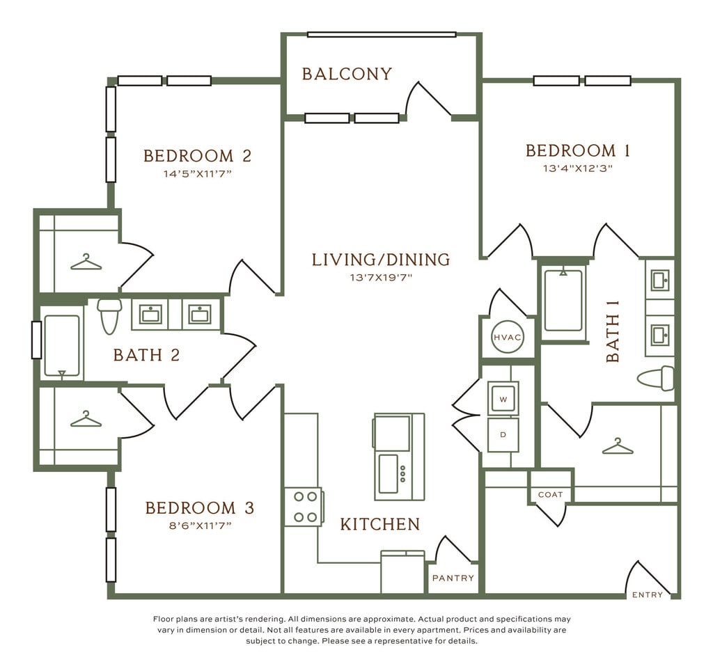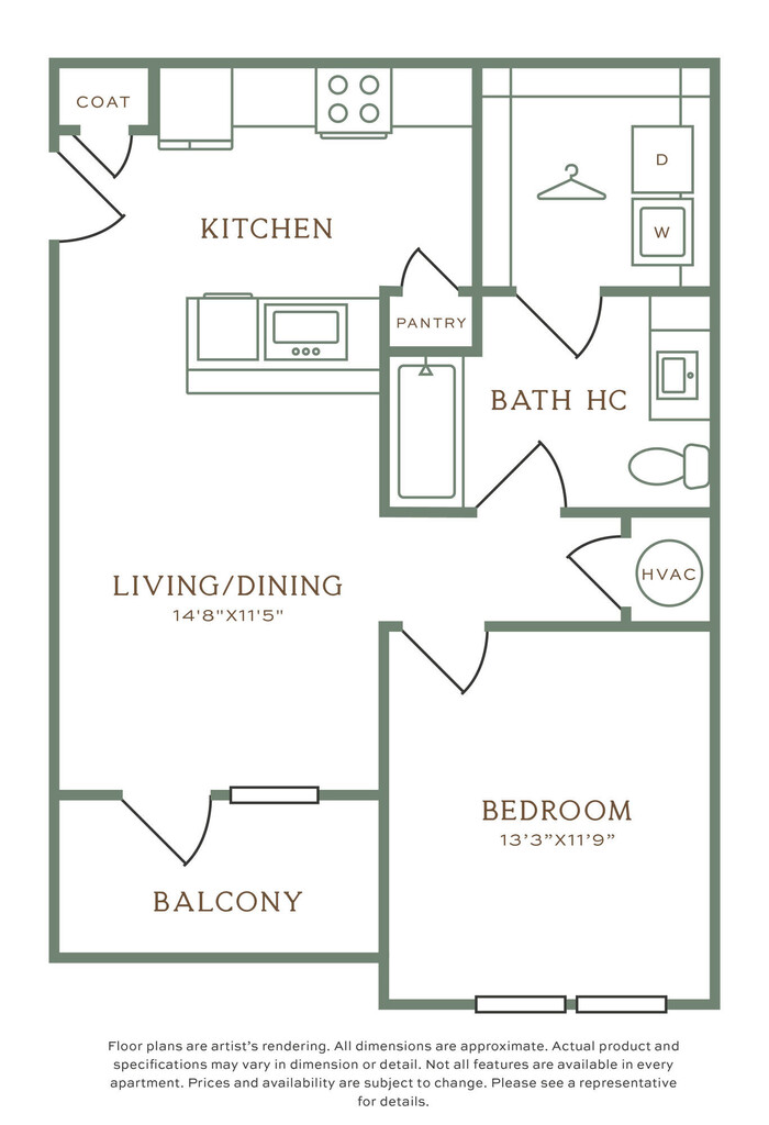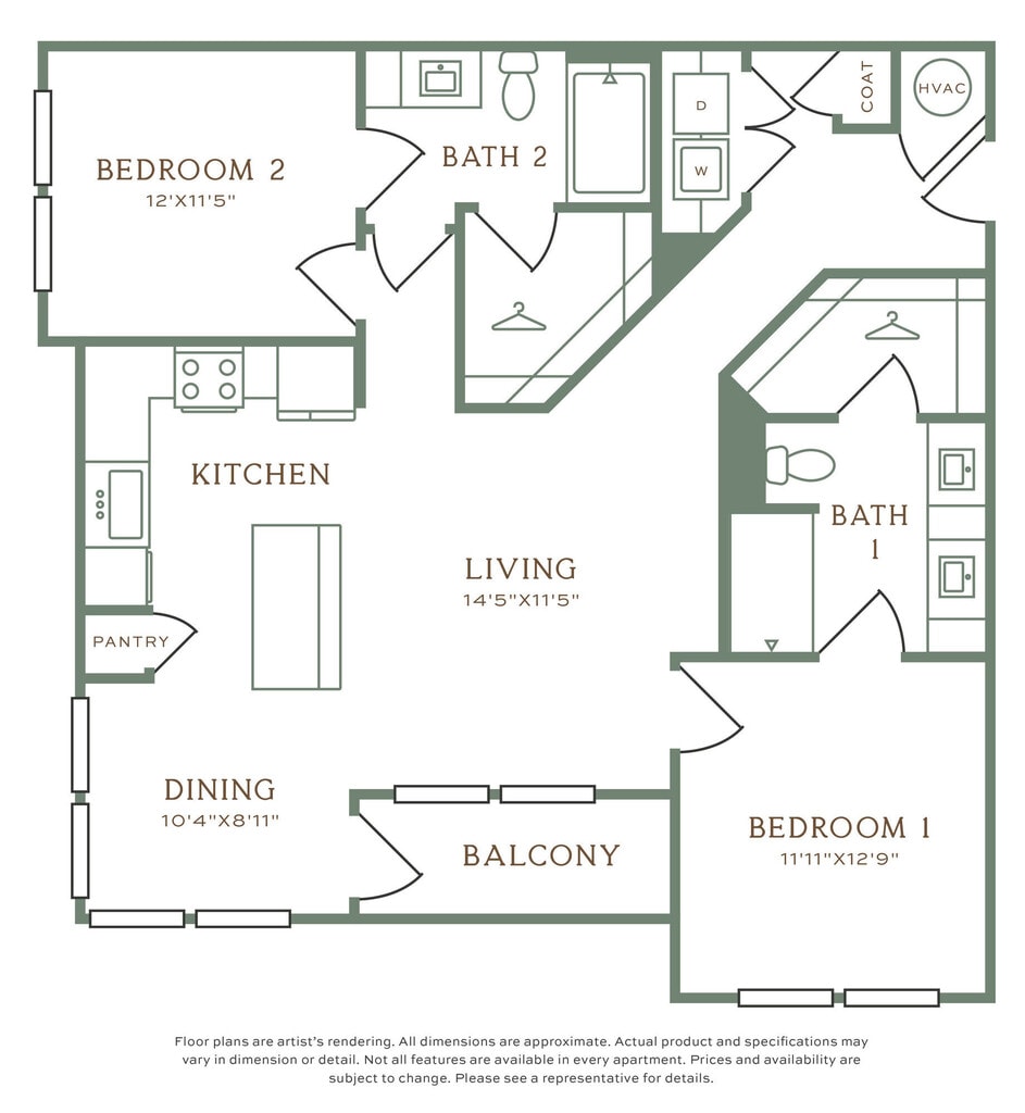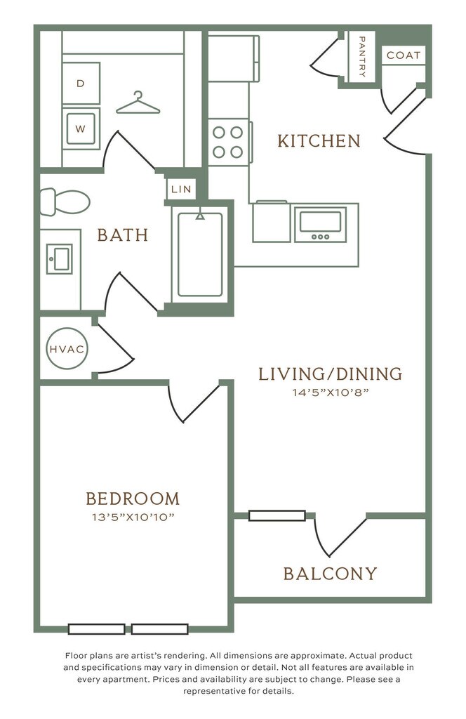 Apartment Model: OL1.4From $1,5701 Bedroom, 1 Bath, 733 sq ftAvailable December 10, 2025Floor plans are artist's rendering. All dimensions are approximate. Actual product and specifications may vary in dimension or detail. Not all features are available in every rental home. Prices and availability are subject to change. Base rent is based on monthly frequency. Additional fees may apply, such as but not limited to package delivery, trash, water, amenities, etc. Deposits vary. Please see a representative for details.