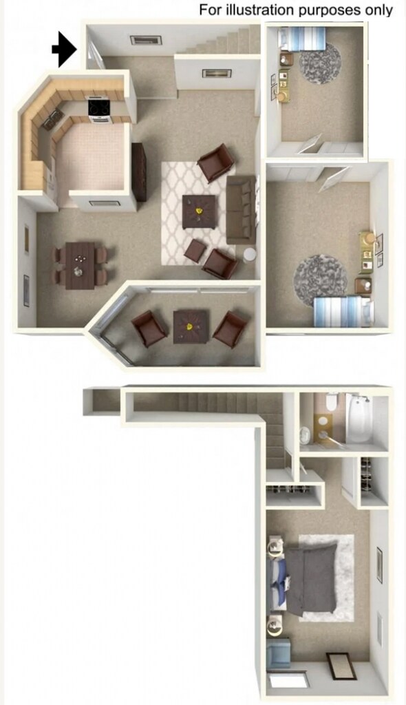 2 Beds, 2 Baths, 1196-1296 sq ftAvailable NowLargest 2 BedroomThis is the largest 2 Bedroom at this PropertyModel Gallery