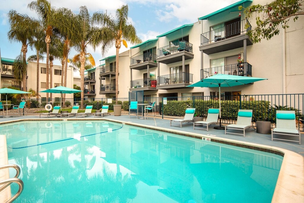 August 29, 2015Straight shot to Pacific Ocean and freeways leading to various local and out-of-town destinations -- mountains, desert, Mexico. Walk to Mission Bay, golf, tennis, schools. Gated; pool; Jacuzzi; parking; small pets allowed; onsite, multimachine laundry rooms; weight and cardio rooms; computer-equipped office space; very well-kept grounds; caring, responsive staff.Review from Apartments.com
