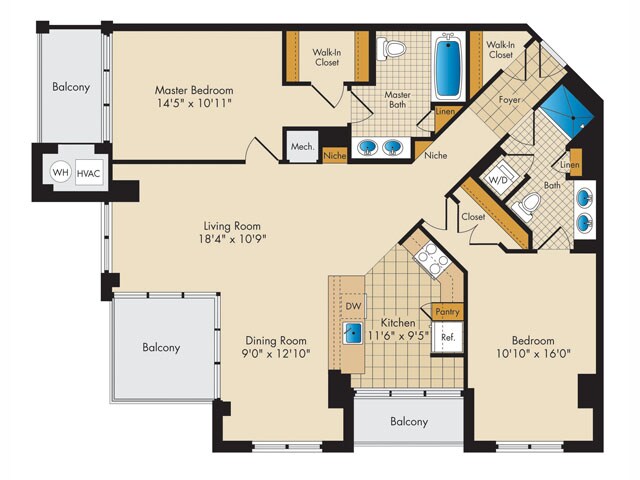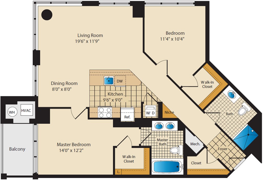 Apartment Model: TH14From $3,1881 Bedroom, 1 Bath, 1011 sq ftAvailable Now![]()