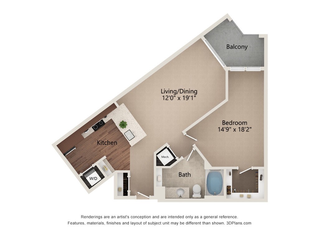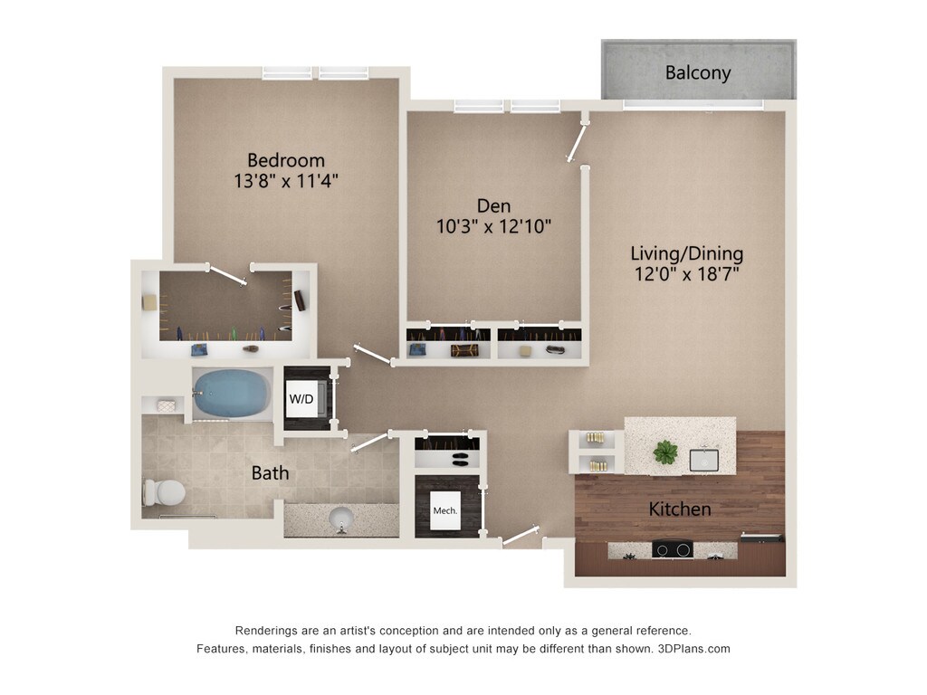 Studio, 1 Bath, 693 sq ftLargest StudioThis is the largest Studio at this PropertyModel Gallery
