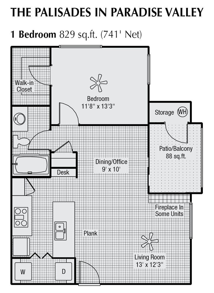 1 Bed 1 Bath 829 SqFt (741 Net)