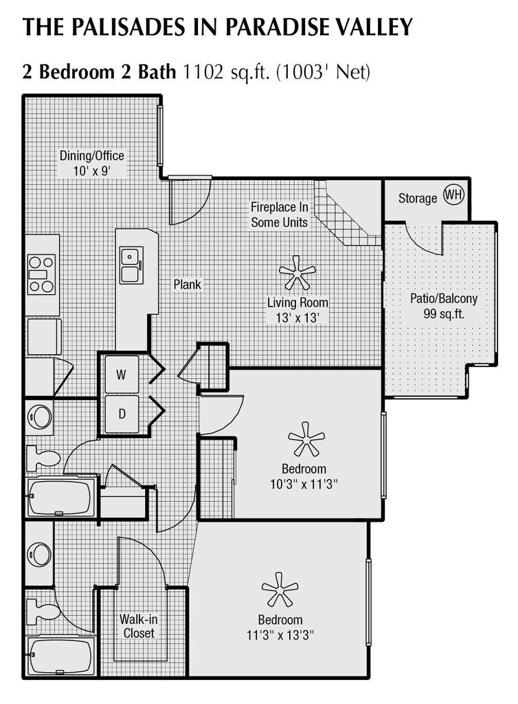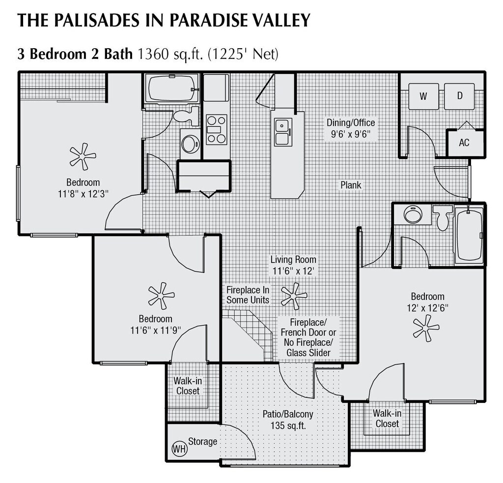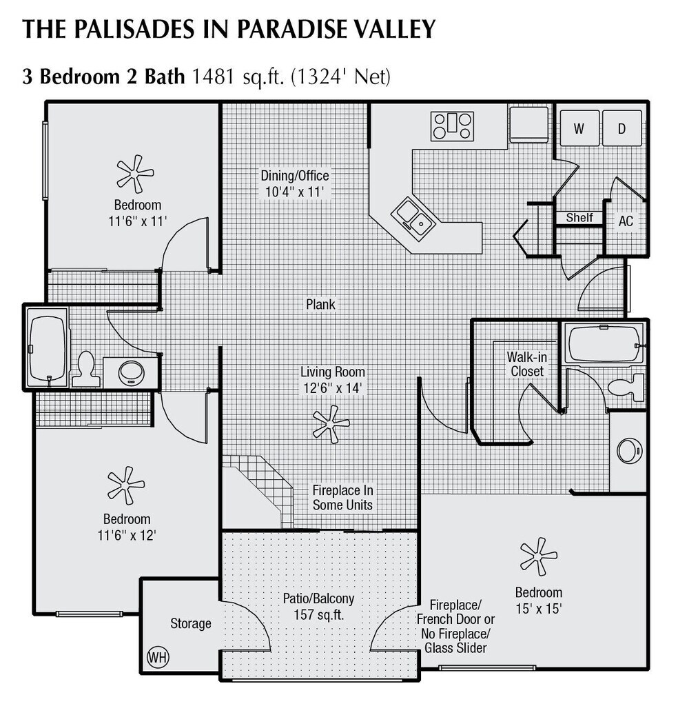 Welcome to your new home at The Palisades in Paradise Valley, offering unique interiors such as plank flooring, brushed nickel fixtures, vaulted ceilings, walk-in closets, ceiling fans with lights, decorative fireplaces, and washer/dryer. Enjoy spectacular amenities: 3 pools (1 heated) and 2 spas, fitness center, playground w/ shade sail, business center, and putting green. Pets are welcome by breed, not weight. Visit our dog park! For the past 45 years, Management Support has provided an outstanding living experience, including our dedication to the highest level of maintenance and service to our residents. Find your new home today!