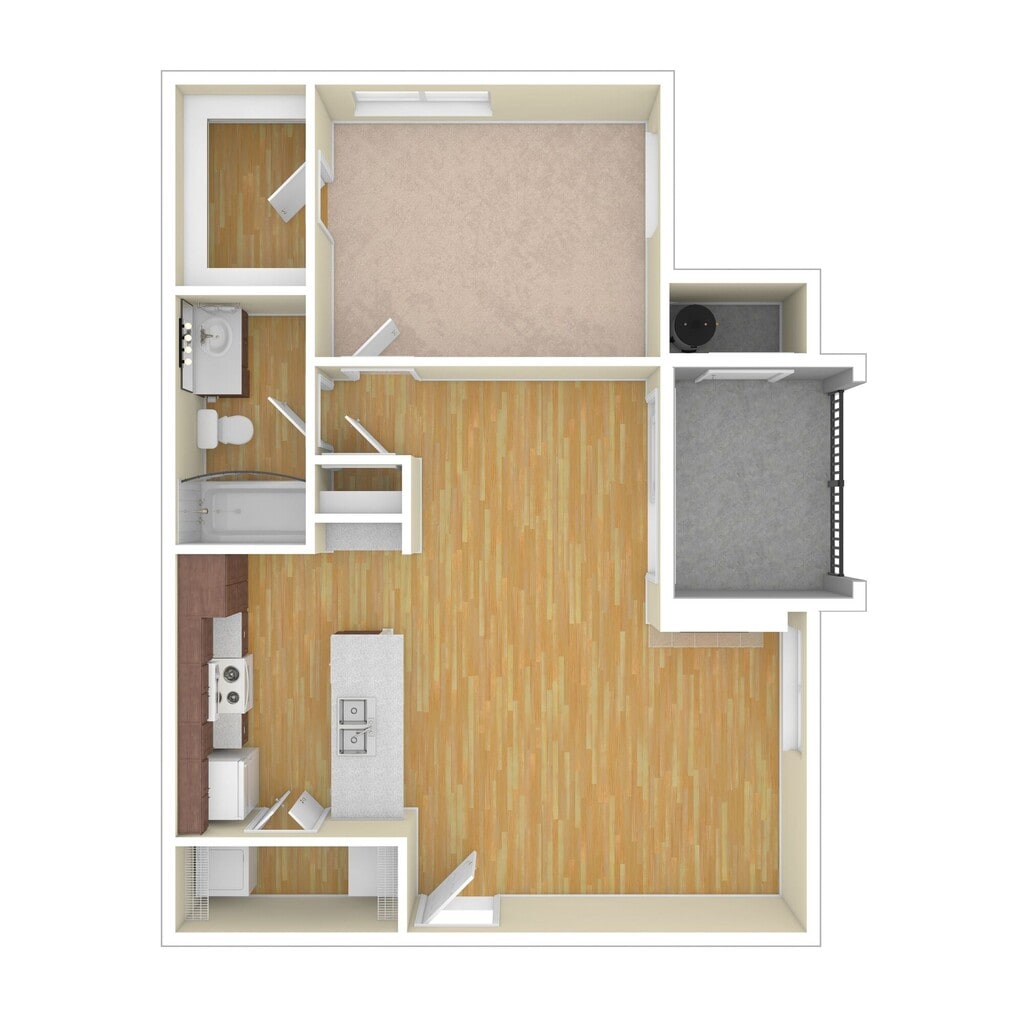 1 Bed, 1 Bath, 741 sq ftAvailable NowLargest 1 BedroomThis is the largest 1 Bedroom at this PropertyModel Gallery