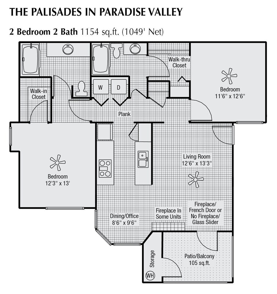 1 Bedroom to 3 Bedroom Apartments at The Palisades in Paradise Valley currently range from $1,302 to $2,489