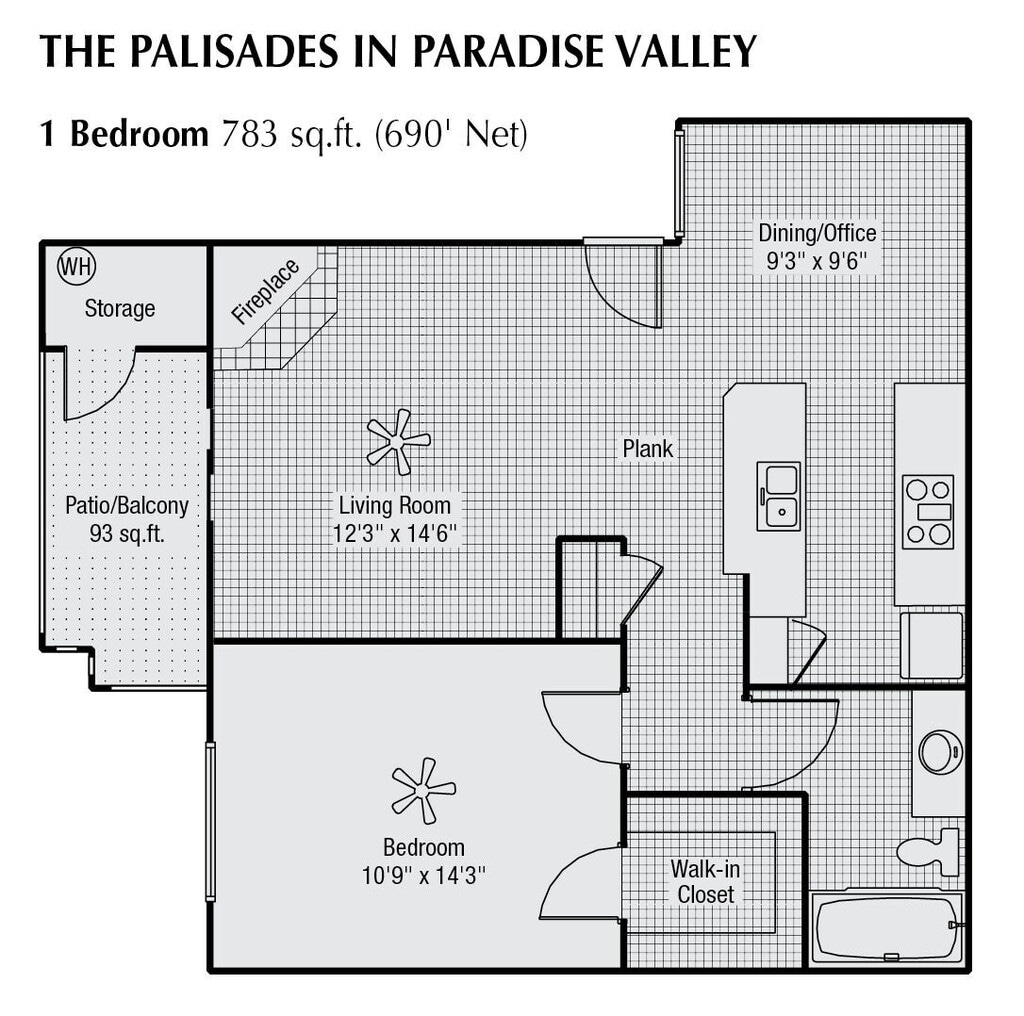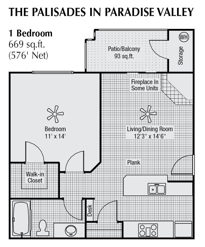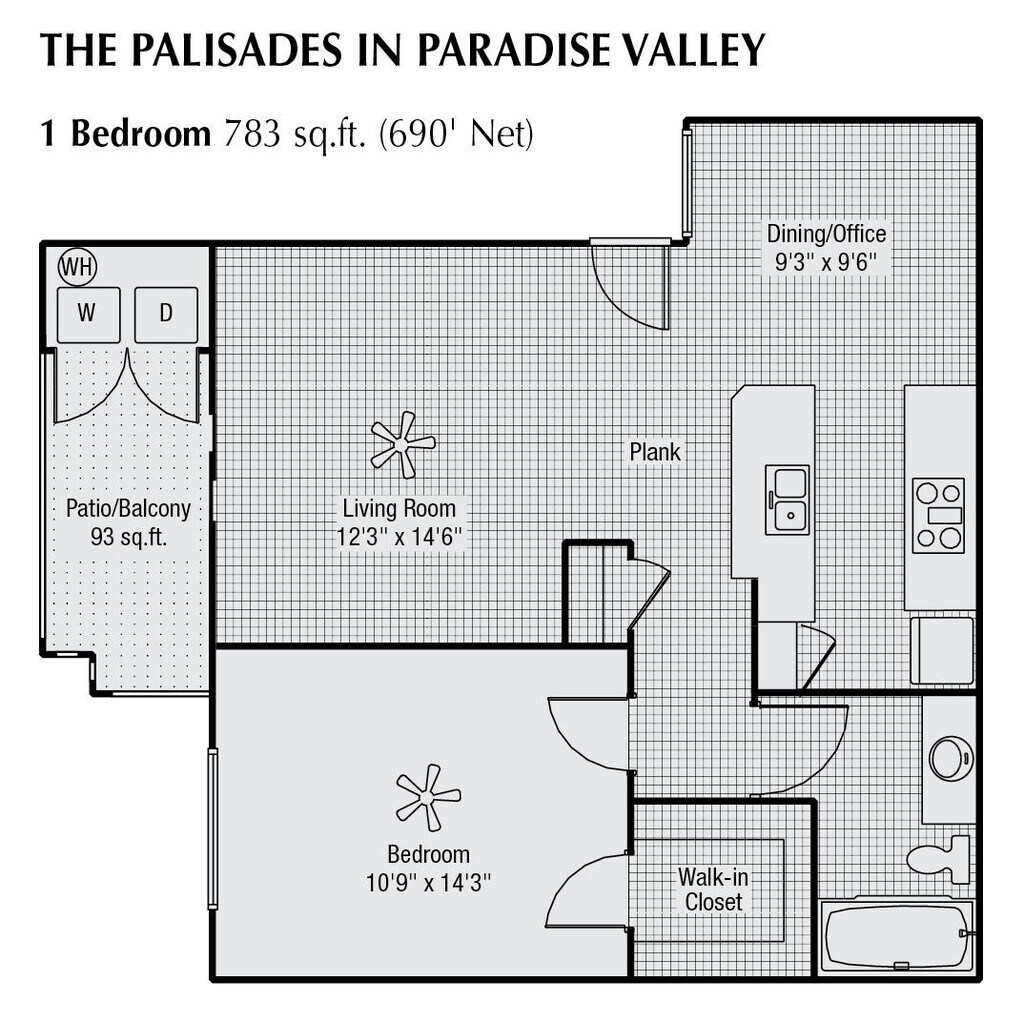 The Palisades in Paradise Valley offers 1 to 3 Bedroom apartments starting from $1,302 and having 576–1,324 sq ft. Here is the current pricing and availability: