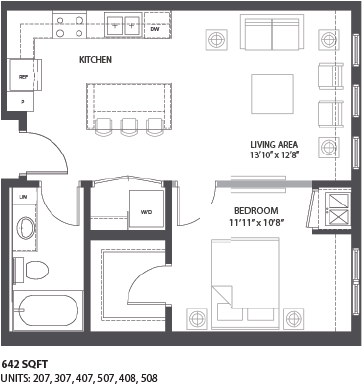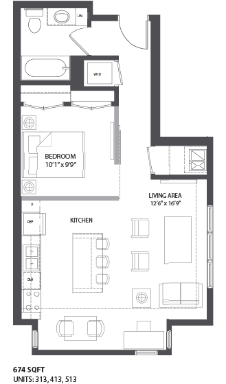 1 Bed, 1 Bath, 578-602 sq ftPlus FeesAvailable NowModel Gallery