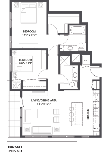 1 Bed, 1 Bath, 693-726 sq ftPlus FeesAvailable NowModel Gallery