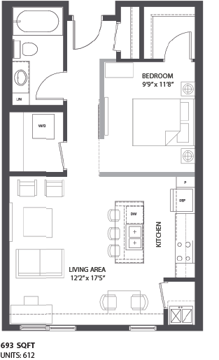 Price Availability Date Unit Sq Ft Deposit $1,625 Available Now 612 693 $300 $1,605 December 10, 2025 411 726 $300 Model Amenities and Features
