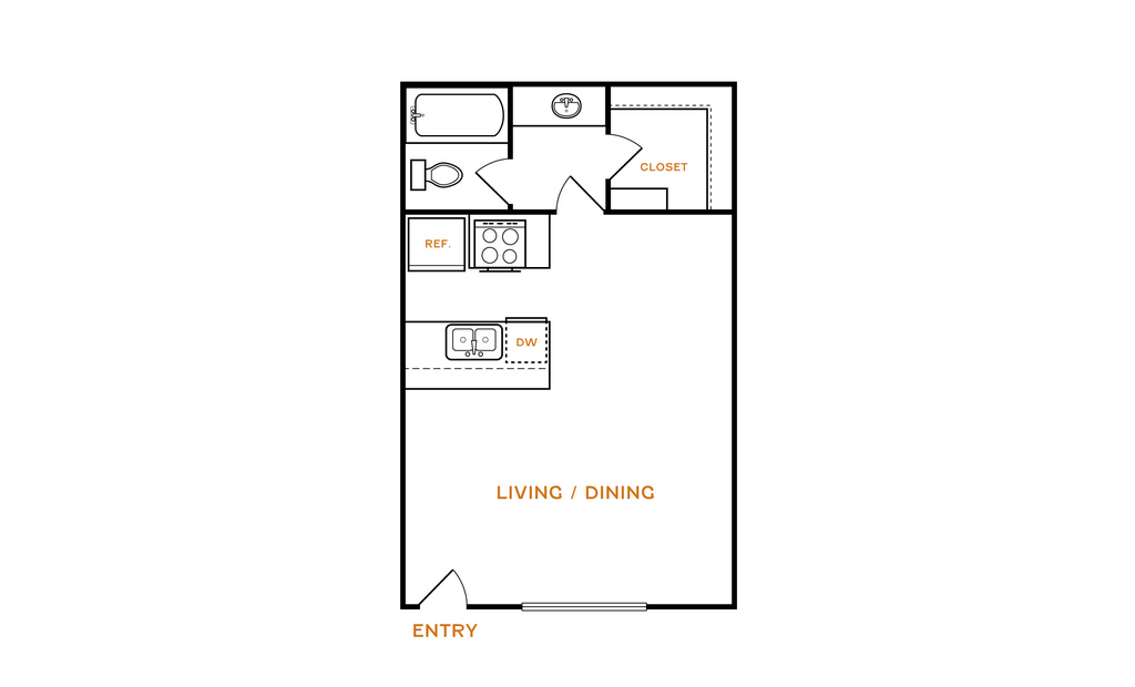 Studio, 1 Bath, 405 sq ftAvailable NowModel Gallery
