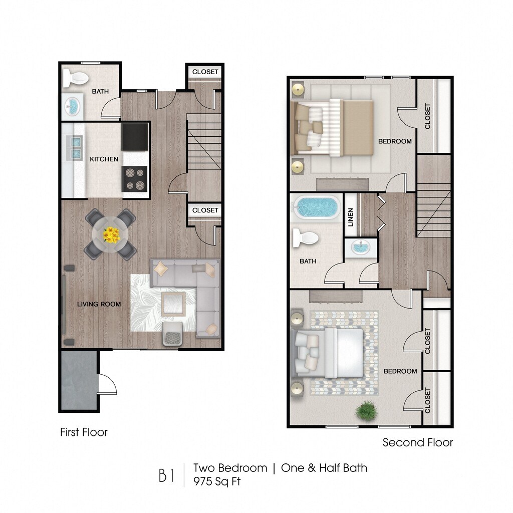 2 Beds, 1.5 Baths, 975 sq ftAvailable NowModel Gallery