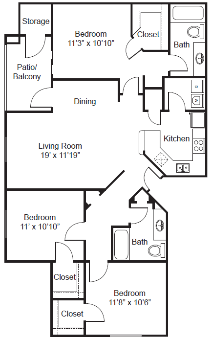 Apartment Model: C33 Bedroom, 2 Bath, 1289 sq ftUnavailable![]()