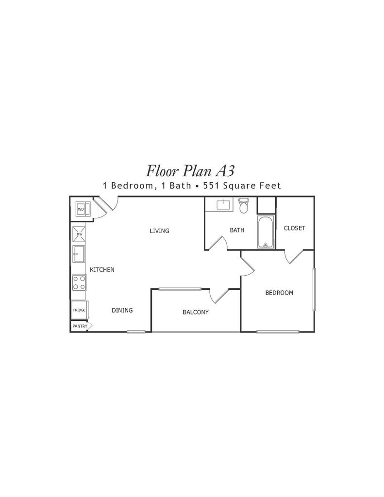 One-Bedroom A3 - Floorplan 1 1-BR A3 - Below Market