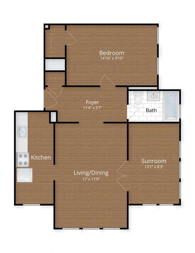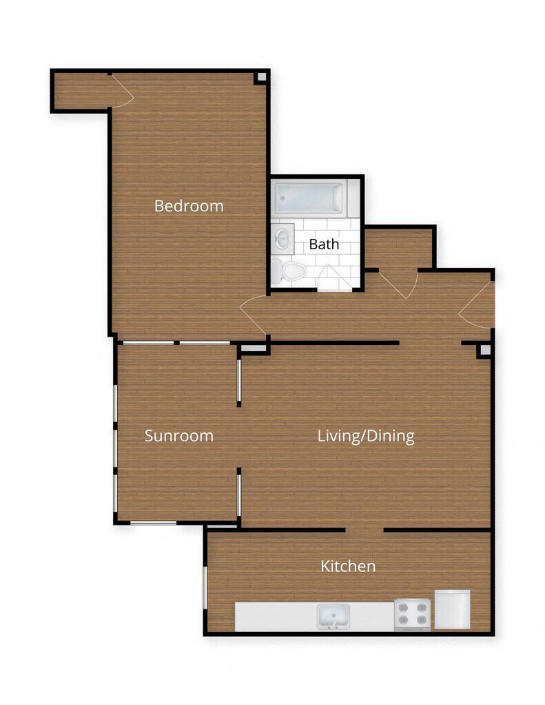 One Bedroom with Sunroom - Floorplan 1 ![]()