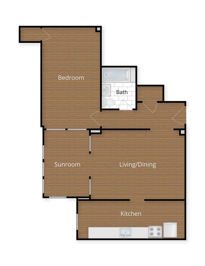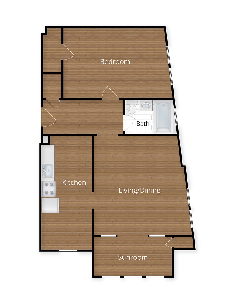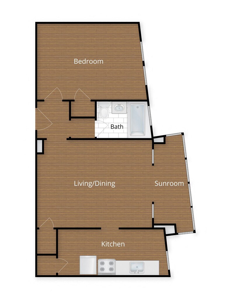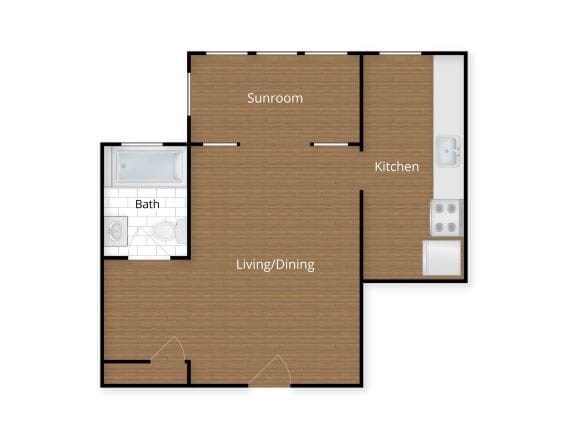 Studio with Sunroom - Floorplan 2 1 Bedroom
