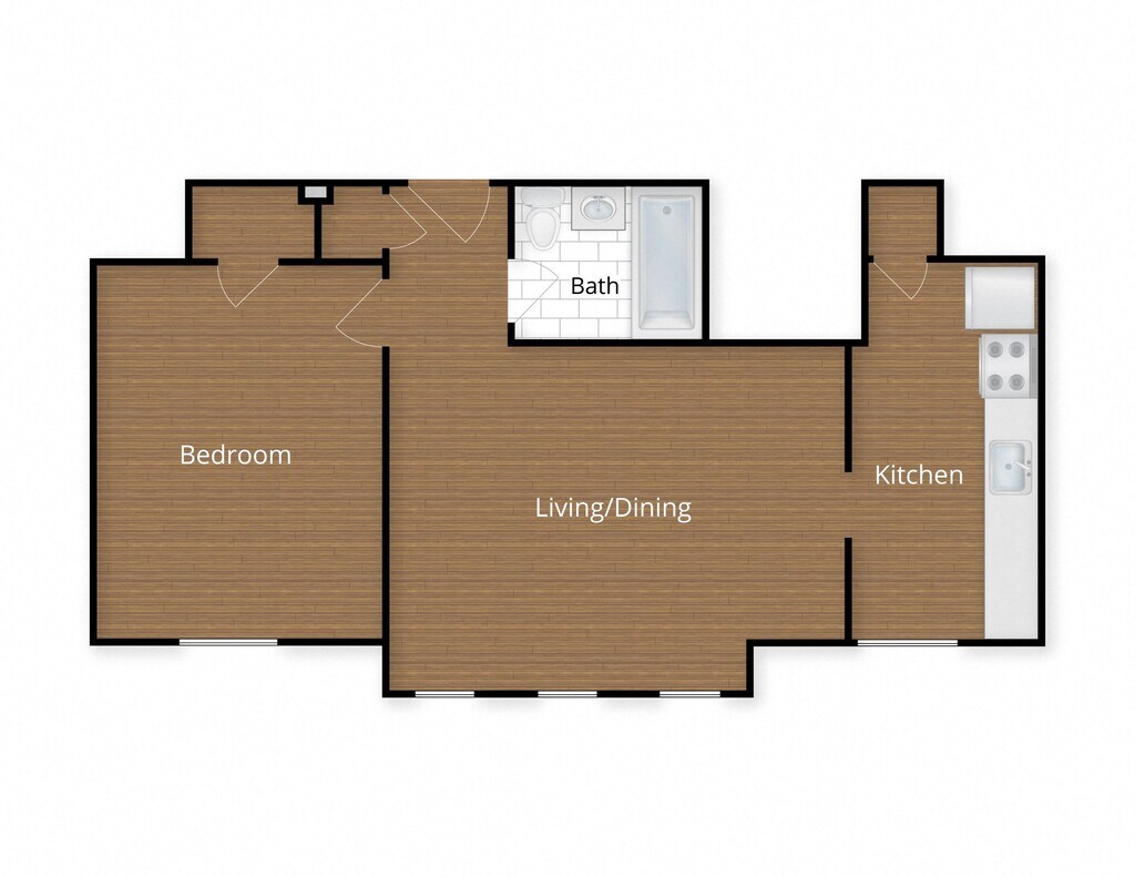 Studio, 1 Bath, 506 sq ftAvailable NowModel Gallery