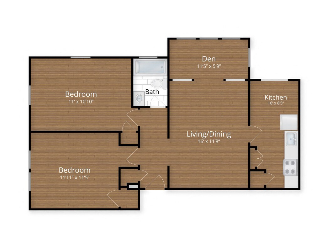 Apartment Model: Two Bedroom with Sunroom2 Bedroom, 1 Bath, 898-907 sq ftAvailable Now![]()