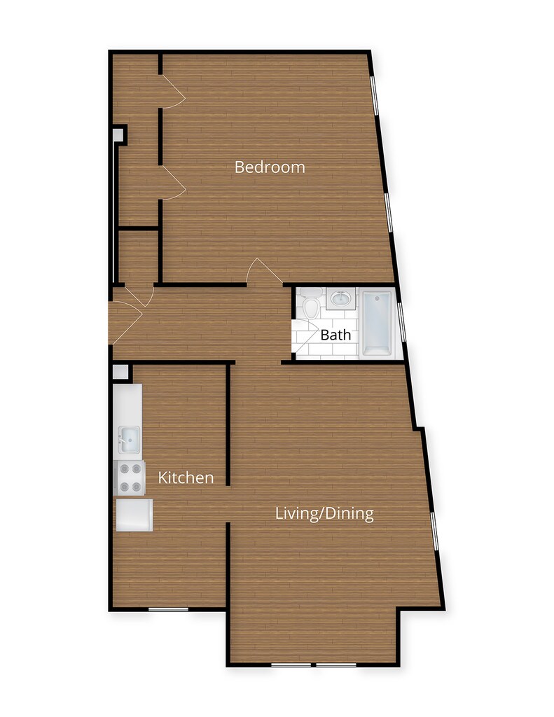 One Bedroom - Floorplan 5 Apartment Unit: 0B11Apartment Model: One Bedroom1 Bedroom, 1 Bath, 950 sq ftAvailable Now![]()