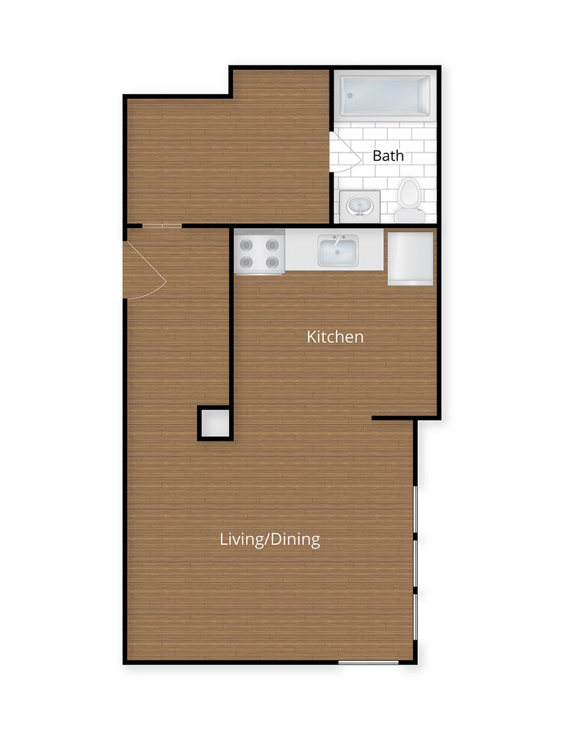 Studio, 1 Bath, 387-393 sq ftAvailable NowModel Gallery